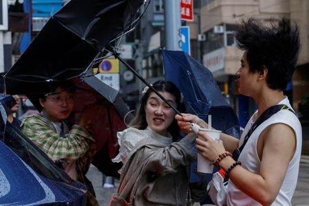 BEIJING (Reuters) -Typhoon Koinu, which lashed Taiwan with rain and wind last week, on Sunday turned south over the sea off the coast of China’s Guangdong province towards the resort island of Hainan, with its intensity nearly unchanged from a day earlier.