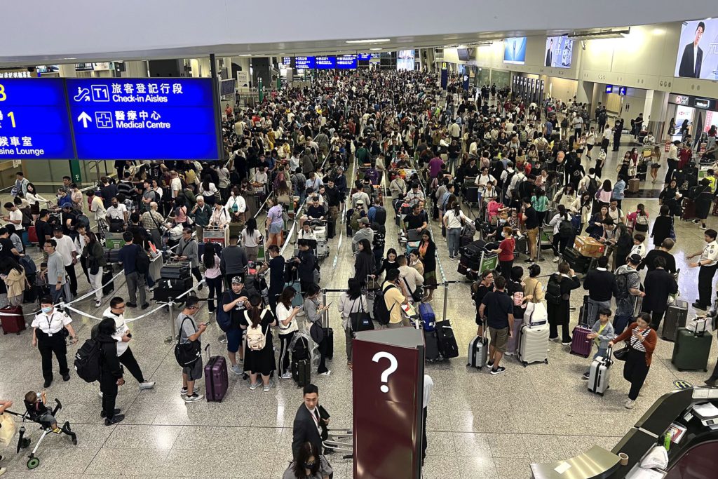 9 signal, which was issued at 7 p.m. That meant hundreds of passengers were left stranded at Hong Kong International Airport Sunday evening, where long lines formed for taxis.