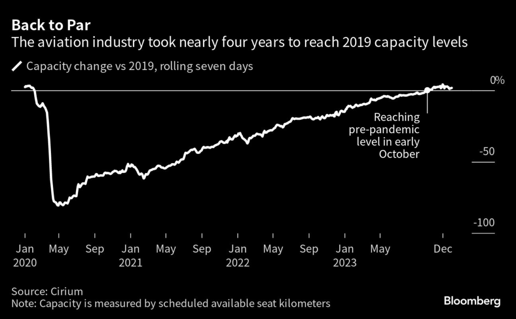 It took four long years for global airline capacity to return to pre-Covid levels — but for passengers and airlines, the industry has changed forever