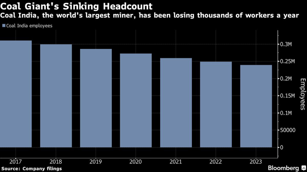 Coal India Ltd., the state-owned miner that produces more coal than any other company, is likely to face the biggest corporate impact from layoffs, with potential cuts of nearly 74,000 workers by 2050, according to the report.