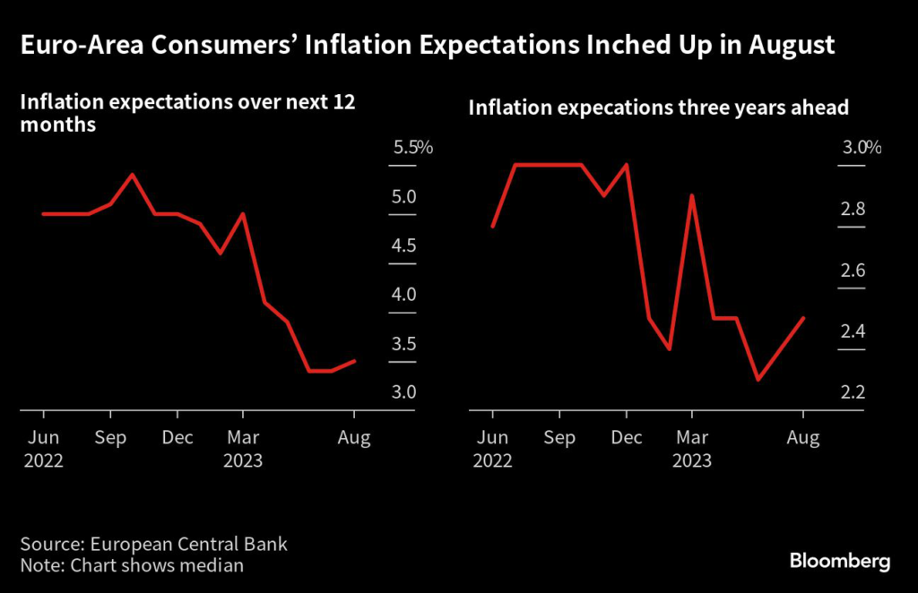 Consumer expectations for euro-area inflation increased marginally in August — reinforcing the notion that it’s too soon for the European Central Bank to declare victory over rising prices.
