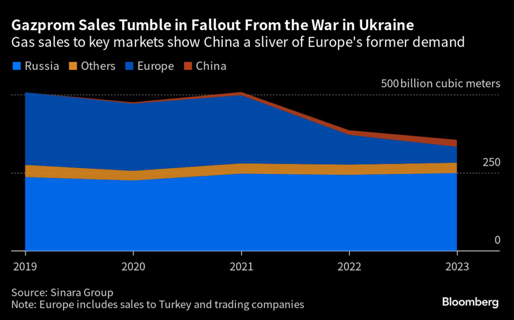 (Bloomberg) — Russian President Vladimir Putin overplayed his hand by trying to use Gazprom PJSC to bring Europe to its knees, and now his efforts to bolster the state-controlled gas giant are at the mercy of China.