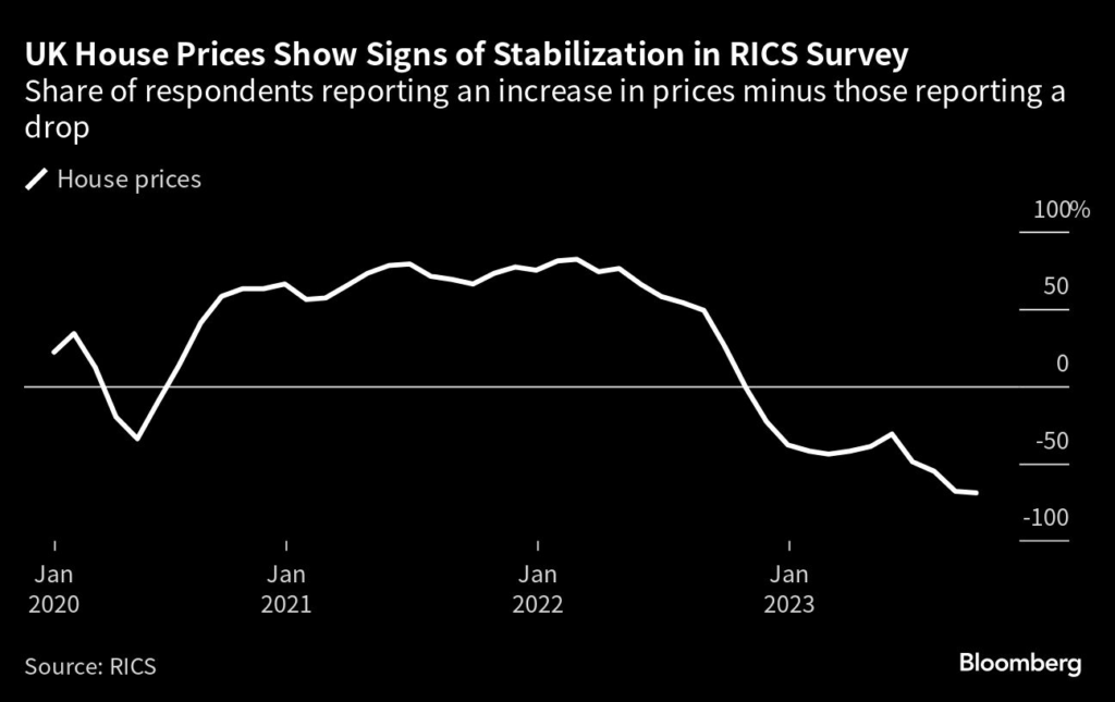 (Bloomberg) — The UK housing market showed signs of stabilizing in September as borrowing costs continued to ease amid hopes the Bank of England may be finished raising interest rates, a survey found.