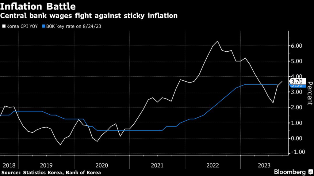 The BOK started its rate-hike cycle in August 2021, leading a pack of monetary authorities embarking on tightening cycles as their economies recovered from the pandemic.