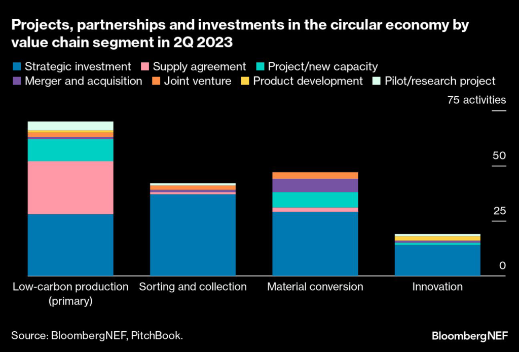 Part of that strategy entails chasing companies with business models that “allow you to use less virgin material to create things” or “save money from day one,” Goldstein said.