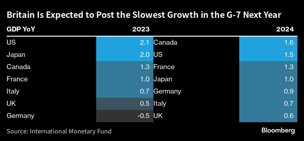Hunt is attending the IMF meetings in Marrakech, where the Washington-based lender downgraded its UK growth forecast for next year to just 0.6%, the slowest of all Group of Seven advanced nations.