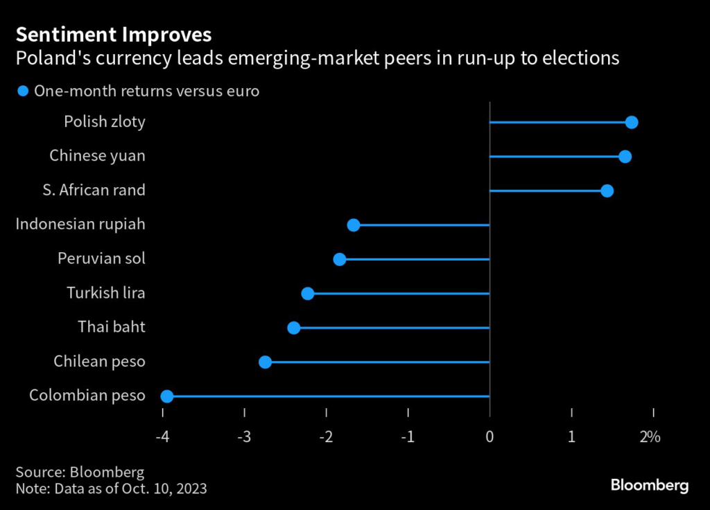 Indeed, news about the rising chances of an upset victory by a three-party opposition bloc has fueled gains in Warsaw stocks and the zloty this week.