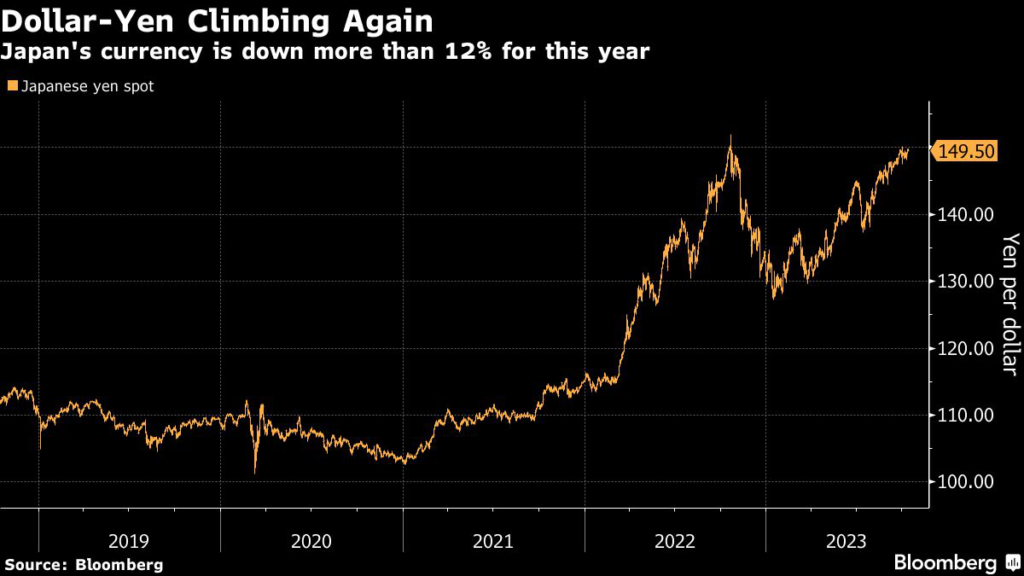 Whether Japan will intervene to support the yen has been a key focus lately, with the currency staying near 150 per dollar.