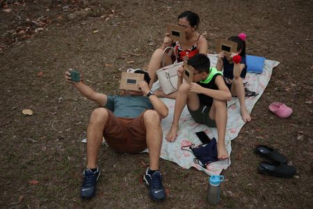 CAMPECHE, Mexico (Reuters) – Thousands of people across the Americas gazed at the heavens on Saturday to witness a rare phenomenon known as an annular solar eclipse, when the moon passes in front of the sun, momentarily producing the appearance of a “ring of fire” in the sky.