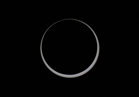 Instead it creates the image of a brilliant ring on the outlines of the sun surrounding the dark disc of the moon.