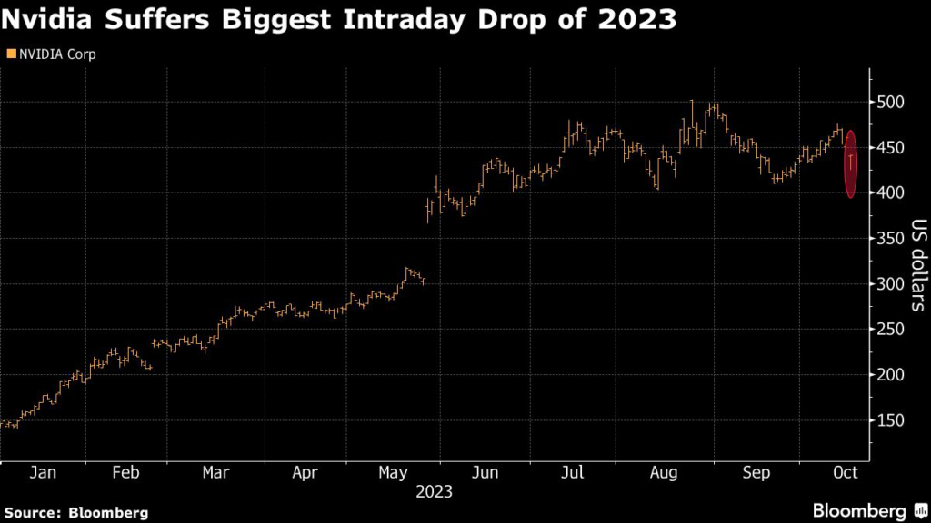 (Bloomberg) — Semiconductor stocks slipped on Tuesday after the US announced sweeping updates to export curbs designed to block China’s access to advanced computer chips, changes that will restrict the sale of semiconductors that Nvidia Corp.