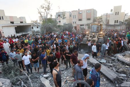 GAZA (Reuters) -About 500 Palestinians were killed in a blast at a Gaza hospital on Tuesday that Palestinian health authorities said was caused by an Israeli air strike but that the Israeli military blamed on a failed rocket launch by a Palestinian militant group.