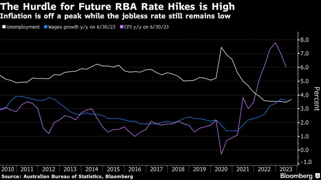 (Bloomberg) — Australia’s central bank considered raising interest rates this month before deciding the case to stand pat was “stronger,” while signaling it’s prepared to tighten further should inflation take too long to return to target.
