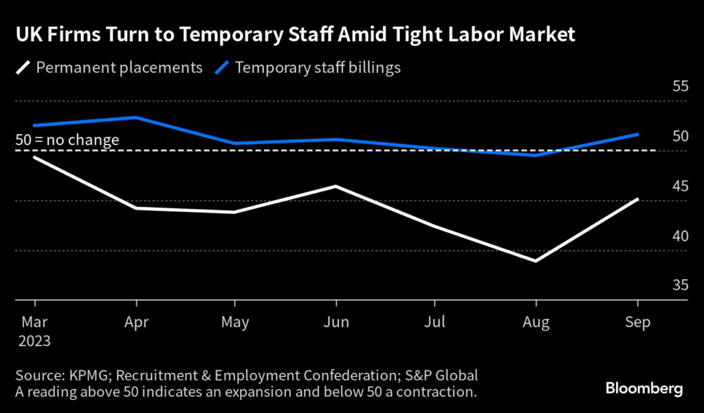 Meanwhile, temporary staff billings in the UK returned to growth in September after a dip in August, with the most pronounced rise since April.