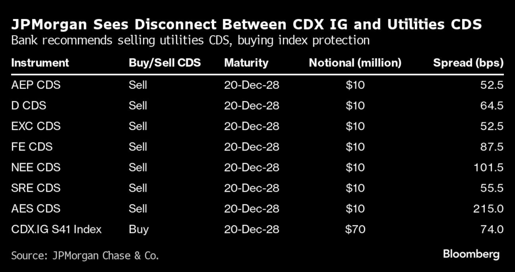 (Bloomberg) — Utilities have been hit too hard in the US credit derivatives market, and traders should position for the credits to recover, according to JPMorgan Chase & Co.