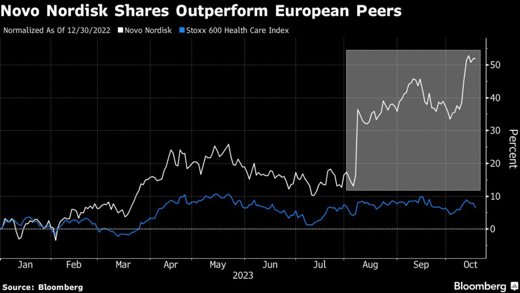 Shares of Ozempic maker Novo Nordisk A/S have risen more than 50% this year, fueled by the buzz around weight-loss drugs such as the blockbuster Wegovy.