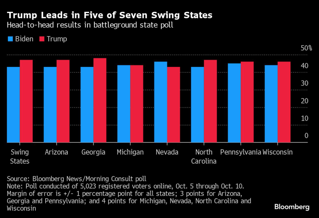 (Bloomberg) — A Bloomberg News and Morning Consult poll provides one of the most detailed looks yet at how the 2024 presidential race is playing out in the seven swing states that could decide who wins the White House.