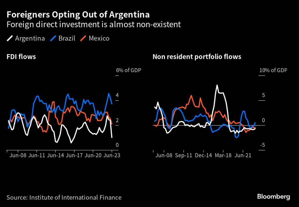 Amid all the volatility, it’s no wonder that Argentina has lagged its peers in attracting global money.