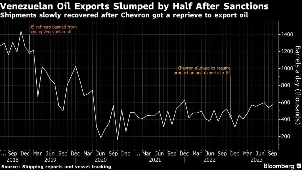 The Biden administration’s decision to relax sanctions appears likely to boost shipments of Venezuelan crude to the US and Europe while squeezing out some deliveries from Canada, Mexico and Colombia.