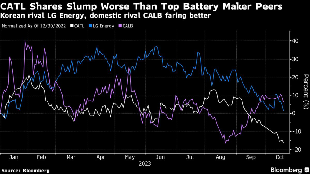But in the Chinese market, CATL’s share slipped to a 17-month low as its rivals muscled in — offering an indication of the difficulties around the cell maker’s third quarter.