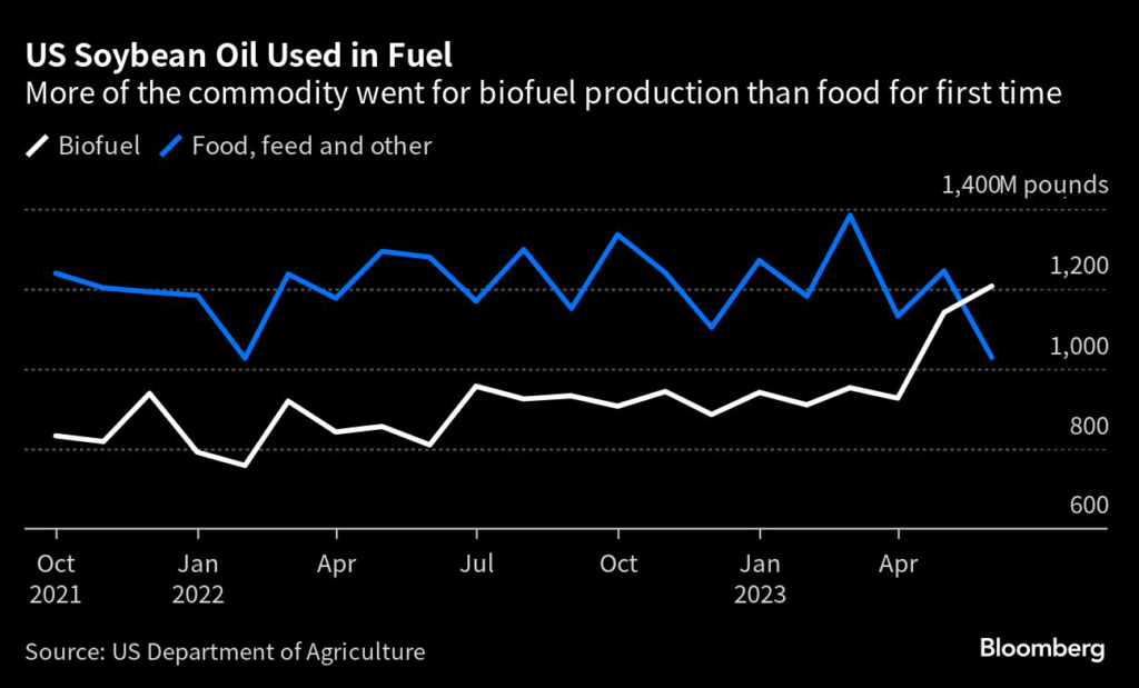 Agriculture companies in the US have been shifting to domestic processing to meet the new biofuel demand even as that leaves fewer beans for export.