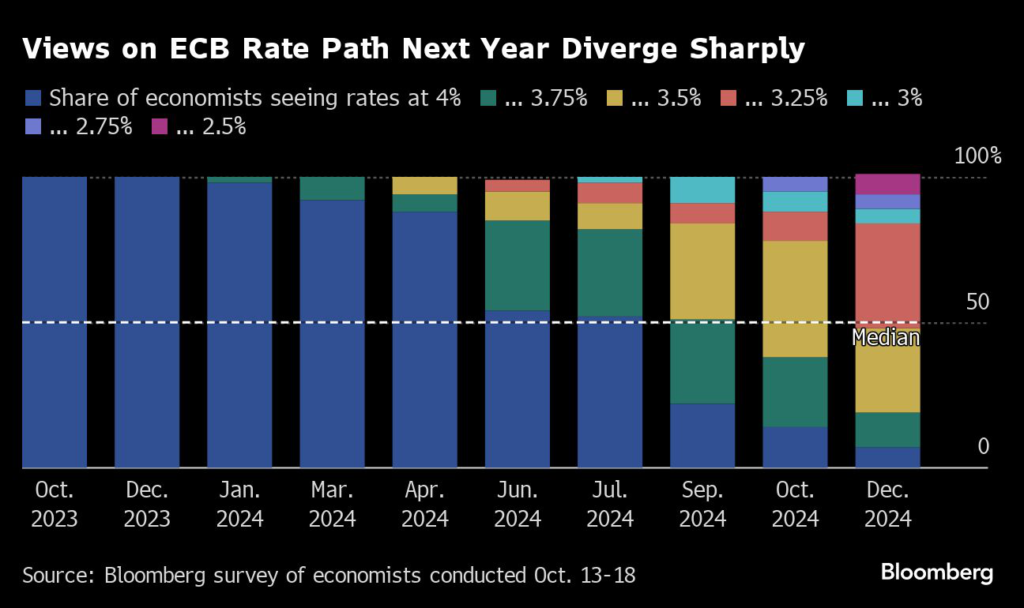 That stance has only been reinforced by the recent bond rout and the Israel-Hamas conflict, whose knock-on effects pose a further danger to 20-nation euro area’s already deteriorating prospects.