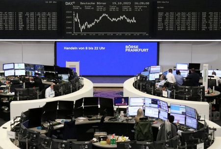 (Reuters) – European shares fell on Friday and were set to post their biggest weekly loss in three months as mounting fears about a wider Middle East conflict, surging government bond yields, and underwhelming earnings reports kept investors risk-averse.