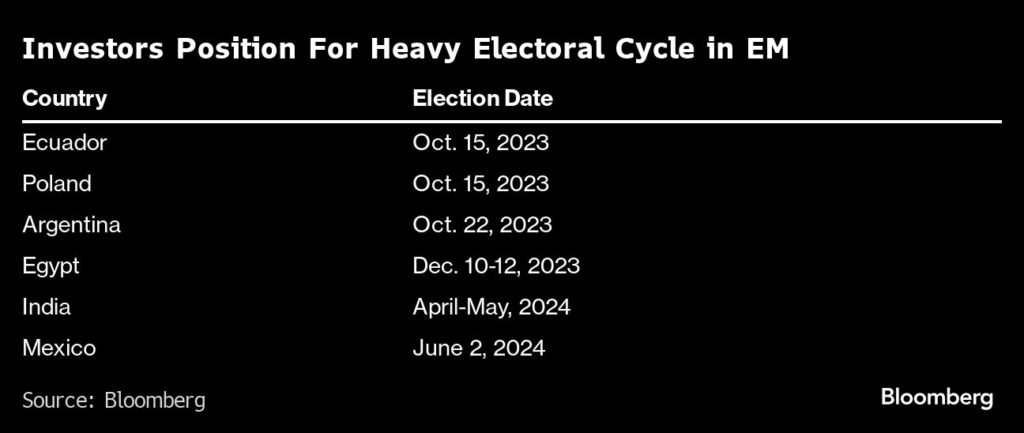 (Bloomberg) — Elections are shining a spotlight on struggling emerging markets, with the prospect of fresh leadership unlocking opportunities in the asset class.