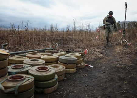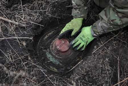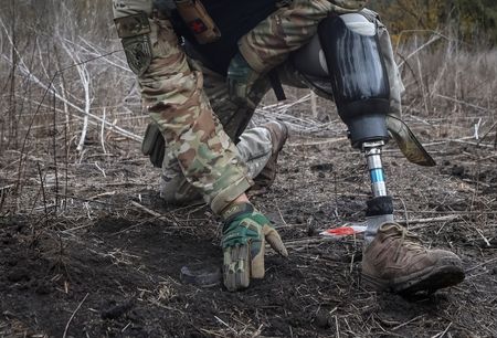 KHARKIV REGION, Ukraine (Reuters) – Andrii Ilkiv, a Ukrainian police sapper, had his leg amputated below the knee after a land mine blew up beneath him in September 2022.