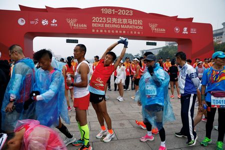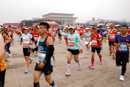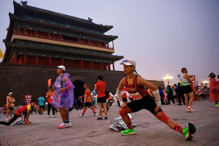 BEIJING (Reuters) -Runners undeterred by thick smog engulfing the Chinese capital ran the Beijing Marathon maskless on Sunday, many wearing shorts in one of the warmest Octobers on record.