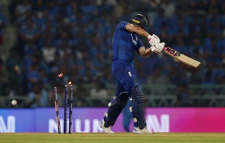 LUCKNOW, India (Reuters) -India maintained their unbeaten streak at the 2023 World Cup with a 100-run victory in a low-scoring contest against holders England, who are facing a premature exit following their fifth defeat in six group matches on Sunday.