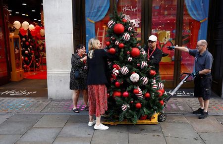 LONDON (Reuters) – Almost three in 10 UK consumers plan to spend less in the festive period this year than last year, reflecting the impact of the ongoing cost-of-living crisis, according to survey data published by Deloitte on Tuesday.