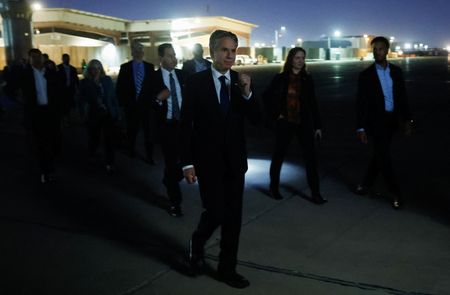 BAGHDAD (Reuters) -U.S. Secretary of State Antony Blinken paid an unannounced visit to Iraq on Sunday, as he tours the Middle East attempting to tamp down tensions after war erupted between Israel and Palestinian militants Hamas last month.