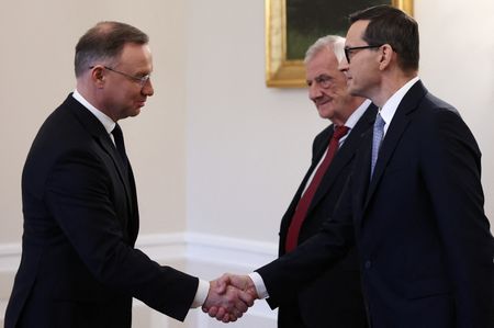 WARSAW (Reuters) -Polish Prime Minister Mateusz Morawiecki will get the first shot at forming a government after his nationalist Law and Justice (PiS) party won last month’s election, the president said on Monday – a seemingly impossible task as it lacks a majority.