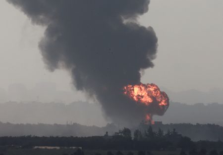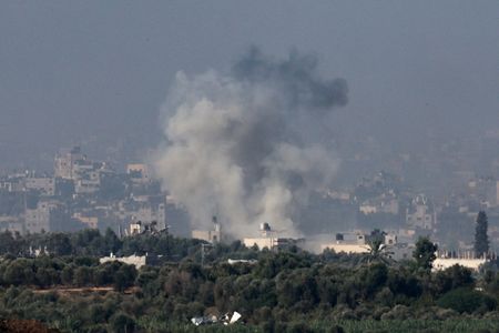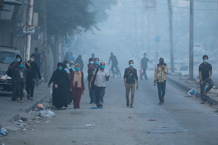 GAZA/JERUSALEM (Reuters) – At least 19 people were killed in an Israeli air strike on a house near a hospital in north Gaza’s Jabalia refugee camp on Wednesday, the enclave’s interior ministry said, as thousands of civilians fled southward to avoid fierce Israeli-Hamas ground fighting.