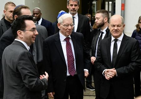 BERLIN (Reuters) -Chancellor Olaf Scholz said he was “ashamed and outraged” at a recent wave of antisemitic incidents in Germany, warning Berlin would not tolerate such anti-Jewish hatred as he marked the 85th anniversary of the Nazis’ “Kristallnacht” pogrom of Jews.