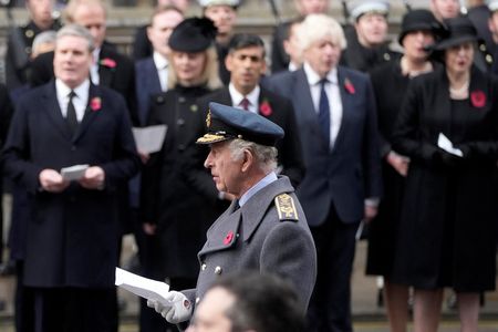 LONDON (Reuters) -King Charles and Prime Minister Rishi Sunak led Britain in remembering the country’s war dead on Sunday, seeking to unify communities a day after a large pro-Palestinian march was marked by skirmishes between far-right counter-protesters and police.