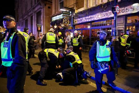 LONDON (Reuters) – Seven people have been charged following a mass pro-Palestinian march and a far-right counter protest on Saturday when more than 140 people were arrested, the police said on Sunday.