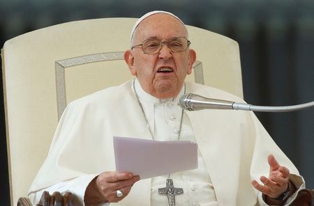 VATICAN CITY (Reuters) – Pope Francis on Wednesday called on the faithful to pray regularly for peace in Ukraine, the Middle East, Sudan and all other war-torn places.