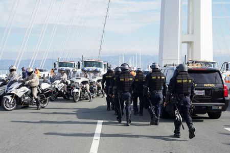SAN FRANCISCO (Reuters) -Dozens of the hundreds of police assembled moved car to car seeking and arresting anti-Israel protesters on Thursday as authorities slowly reopened the vital Bay Bridge heading into San Francisco as the city hosts the Asia Pacific Economic Cooperation (APEC) forum.