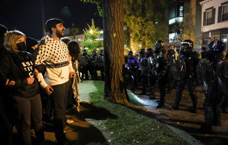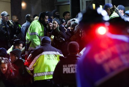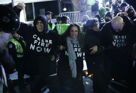 WASHINGTON (Reuters) -U.S. Capitol Police officers in riot gear clashed with dozens of demonstrators who gathered outside the Democratic National Committee (DNC) headquarters in Washington on Wednesday evening to demand a ceasefire in Gaza.