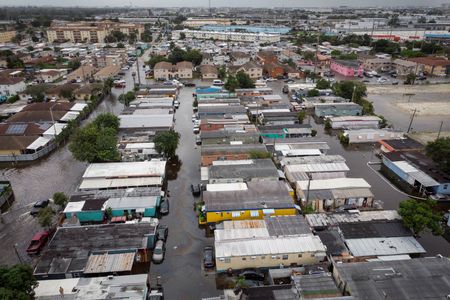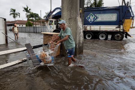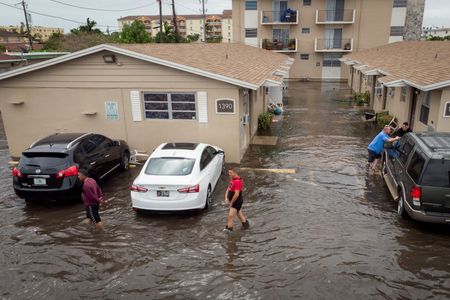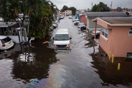 (Reuters) – A fierce storm packing hurricane-force wind gusts dumped more than a foot (30.5 cm) of rain on parts of South Florida on Thursday, flooding homes and streets, downing power lines and trees and leaving tens of thousands of homes and business without power.