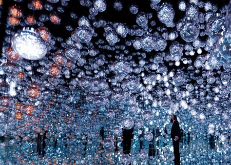 Several pieces of the new Borderless facility are nearing completion, including “Flowers and People,” a continuous computer projection of blooming and scattering petals, and “Bubble Universe,” a mirrored room of twinkling bulbs that appear to extend into infinity.