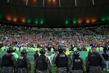 RIO DE JANEIRO (Reuters) – Nicolas Otamendi scored with a towering header to give Argentina a 1-0 away win over Brazil in a bad-tempered World Cup qualifier that was delayed by half an hour on Tuesday after police clashed with fans at a sold-out Maracana Stadium.
