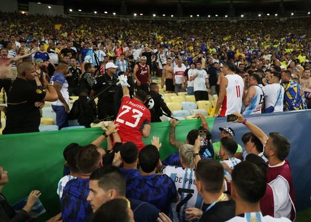 Soccer-Argentina hand Brazil third straight loss after crowd trouble at Maracana