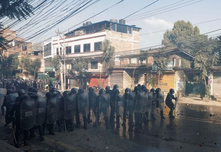 Protesters tried to dismantle a police barricade on the outskirts of Kathmandu and march into the centre of the capital, prompting riot police to intervene and repel the crowd, witnesses said.