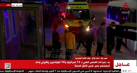 The hostages were transferred out of Gaza and handed over to Egyptian authorities at the Rafah border crossing, accompanied by eight staff members of the International Committee of the Red Cross (ICRC) in a four-car convoy, the ICRC said.
