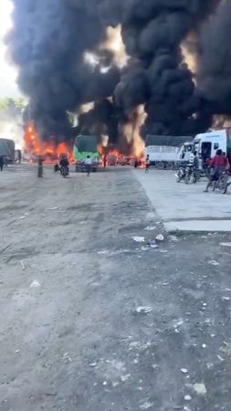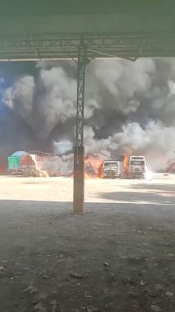 (Reuters) -A convoy of trucks bringing goods into Myanmar from China has gone up in flames in what state media reported on Friday was an insurgent attack, compounding surging insecurity that has raised concern in neighbouring China.