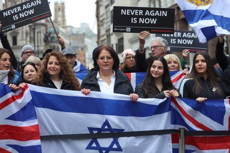 LONDON (Reuters) -An estimated 50,000 demonstrators against antisemitism marched in London on Sunday to protest against a rise in hate crimes against Jews since the attack by Hamas militants on Israel in October and Israel’s subsequent bombardment of Gaza.