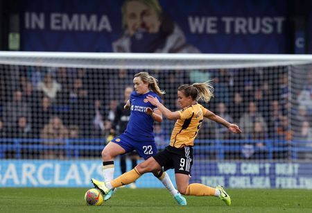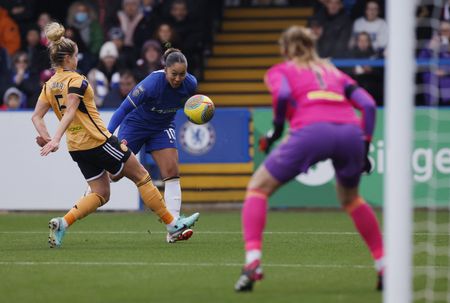 LONDON (Reuters) -Lauren James scored twice as Chelsea beat Leicester City 5-2 on Sunday to stay top of the FA Women’s Super League going into the final international break of 2023, while Arsenal stay second after a 3-0 win over West Ham United.